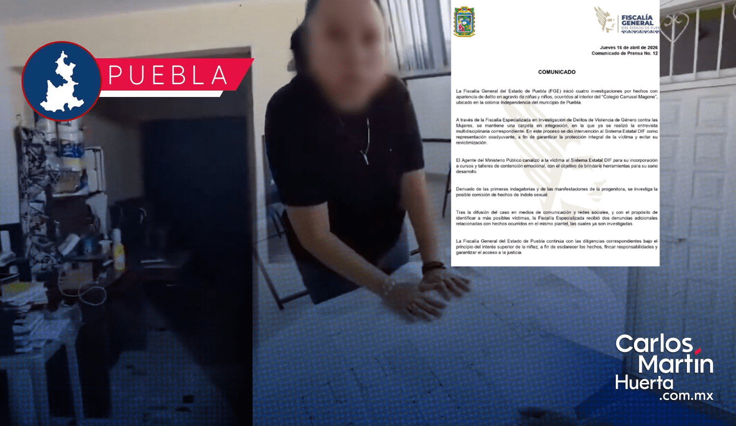 La Fiscalía General del Estado de Puebla (FGE) confirmó la apertura de cuatro investigaciones criminales por delitos cometidos contra niñas y niños en el “Colegio Carrusel Magone”, ubicado en la colonia Independencia. Las autoridades indagan la presunta comisión de abusos de índole sexual dentro de las instalaciones educativas.