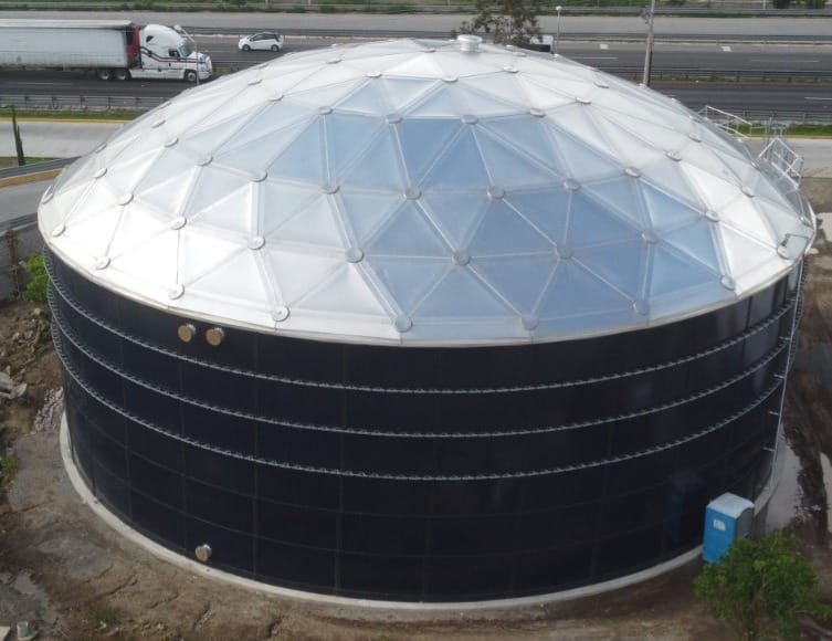 El proyecto destaca por su capacidad de almacenamiento de 5 millones de litros de agua (5,000 metros cúbicos). Lo que realmente posiciona a esta obra en la vanguardia tecnológica es su material de construcción: acero fusionado con Dióxido de Titanio ($TiO_2$). Este recubrimiento especializado no solo asegura la durabilidad de la estructura, sino que garantiza que la calidad del agua se mantenga intacta para el consumo humano.