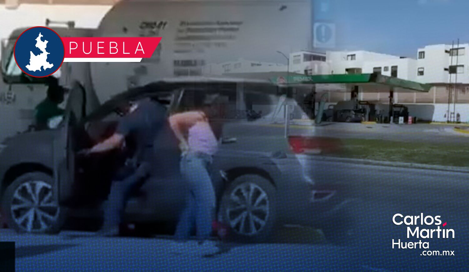 La tarde de ayer, una mujer fue despojada de su camioneta Volkswagen Taos en plena gasolinera ubicada en Lomas de Angelópolis. El asalto logró ser captado por una persona y las imágenes ya circulan en redes sociales.