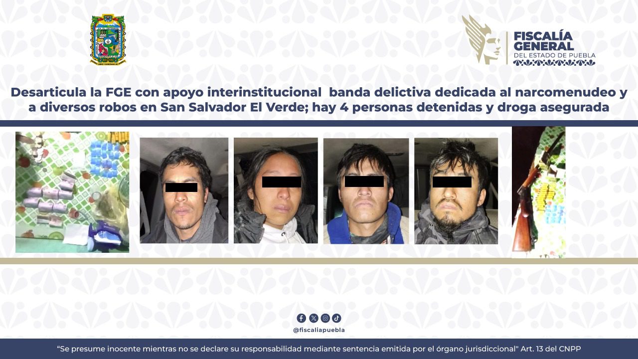 En un operativo conjunto de inteligencia, la Fiscalía General del Estado de Puebla (FGE), en coordinación con la Secretaría de la Defensa Nacional (DEFENSA) y la Secretaría de Seguridad Pública Estatal (SSPE), logró la desarticulación de una peligrosa banda delictiva que operaba en la región de San Salvador El Verde.