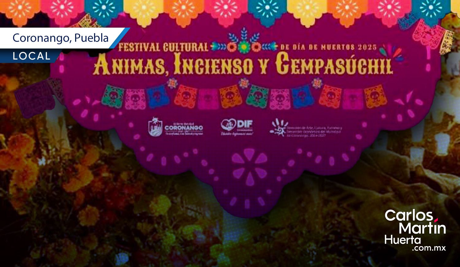 Coronango se prepara para celebrar su Festival Ánimas, Incienso y Cempasúchil 2025. El objetivo del evento será reunir tradición, arte y participación ciudadana en el marco del Día de Muertos.