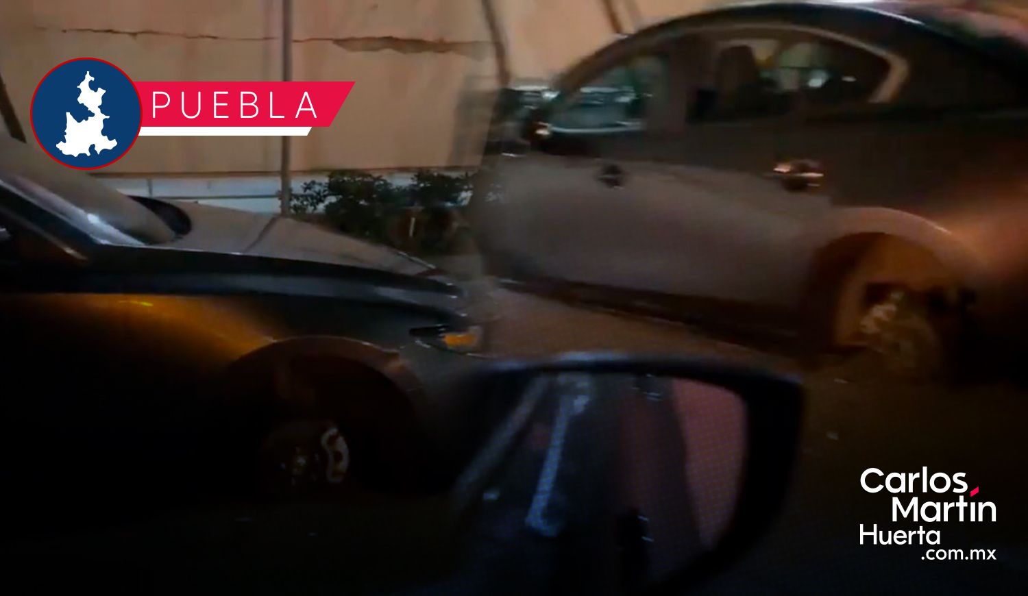 🤬 Sin una sola llanta fue como dejaron este auto Mazda en la zona de Sonata en Angelópolis.