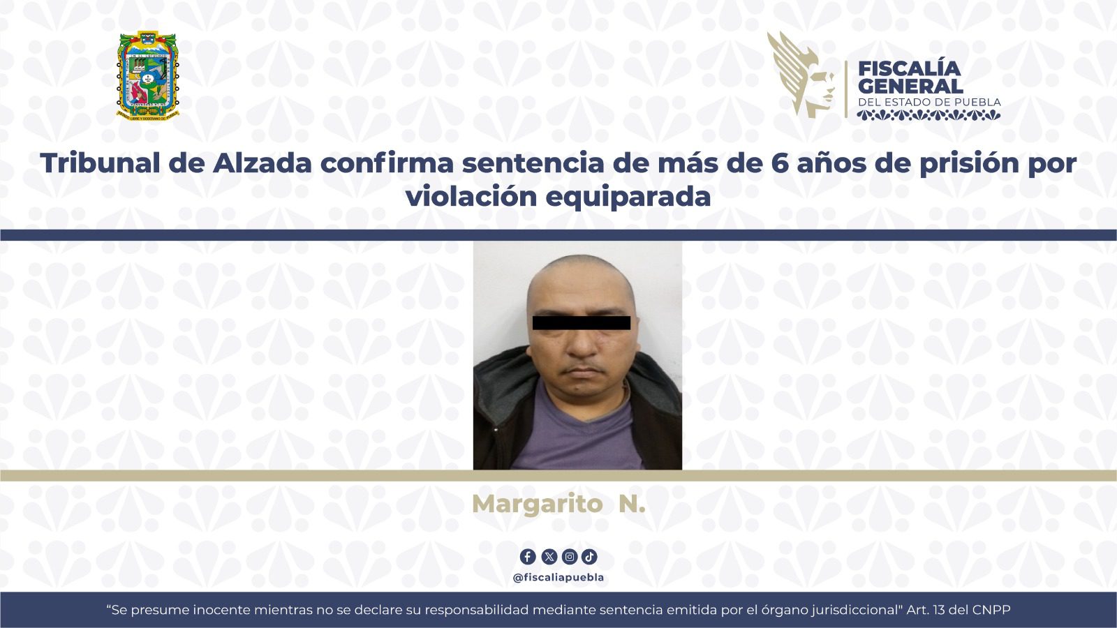 El Tribunal de Alzada confirmó la sentencia contra Margarito N., hallado culpable del delito de violación equiparada, tras un proceso penal respaldado por las pruebas y argumentos presentados por la Fiscalía General del Estado de Puebla. Esta resolución refuerza el compromiso de las autoridades poblanas con la justicia y la protección de los derechos de las víctimas, especialmente de menores en situación de vulnerabilidad.