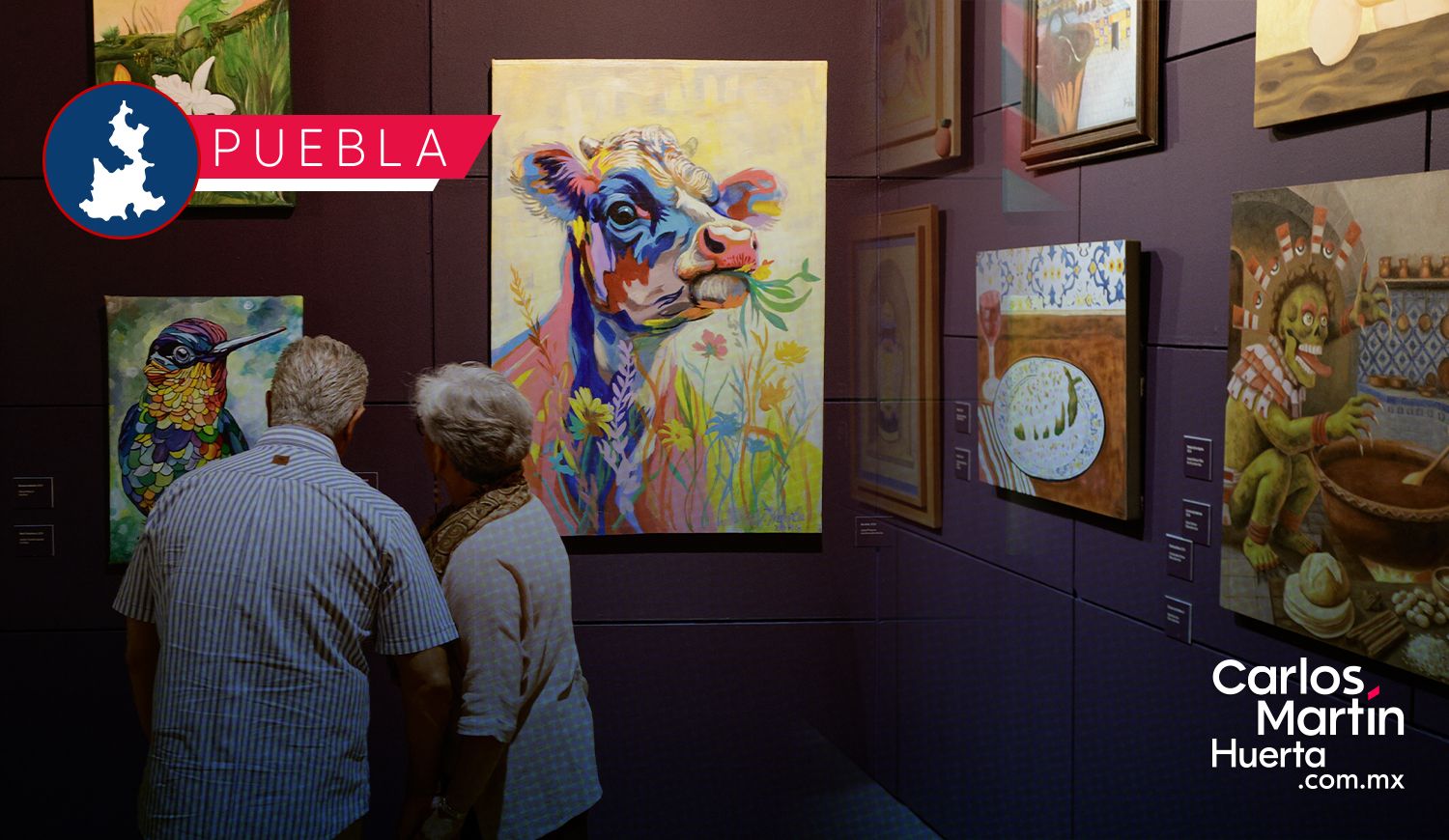 Cada uno de los participantes aportó una obra única empleando técnicas como el óleo, acuarela, talavera, collage, fotografía y elementos en 3D que proyectan componentes de la vida cotidiana y la historia poblana: