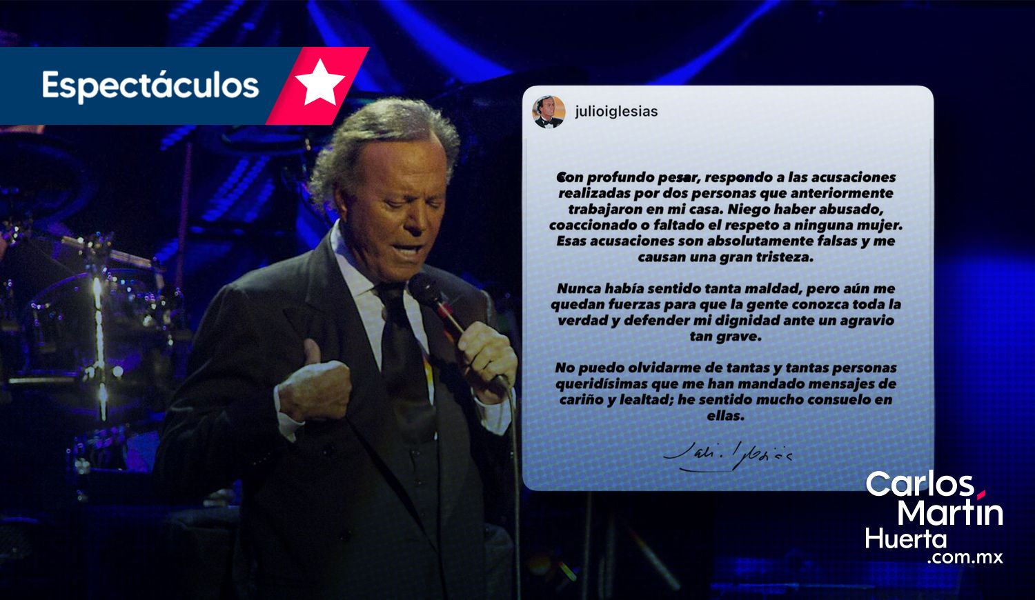 El icónico cantante español emitió un comunicado oficial tras las denuncias de presunta agresión sexual presentadas por dos exempleadas. Iglesias califica los señalamientos como “absolutamente falsos”.