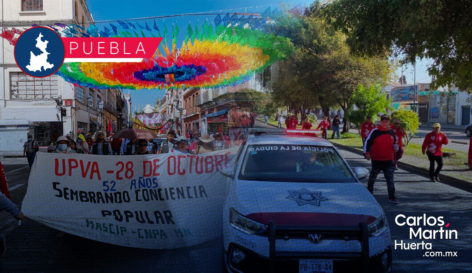 Integrantes de la Unión Popular de Vendedores Ambulantes (UPVA) 28 de Octubre realizaron este martes su marcha conmemorativa por el 52 aniversario de la organización, lo que provocó importantes afectaciones viales en diferentes puntos de la capital poblana. El recorrido inició desde el Mercado Hidalgo y se dirigió hacia el Centro Histórico, Casa Aguayo —sede del gobierno estatal— y posteriormente a la Fiscalía General del Estado (FGE).