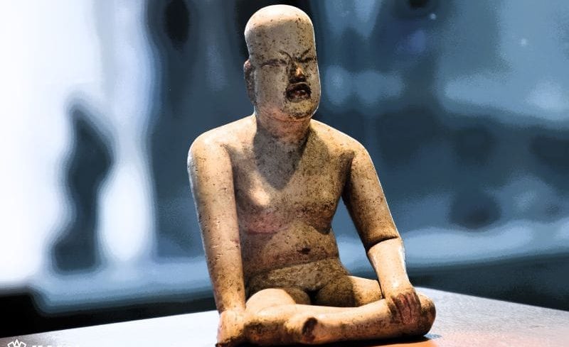 El objeto, elaborado entre los años 800 y 400 a.C. en la región del Altiplano Central mexicano (actual zona de Puebla-Morelos), representa a un personaje masculino en posición sedente, con deformación craneal, torso desnudo y taparrabo, características asociadas a las culturas preclásicas de Mesoamérica.