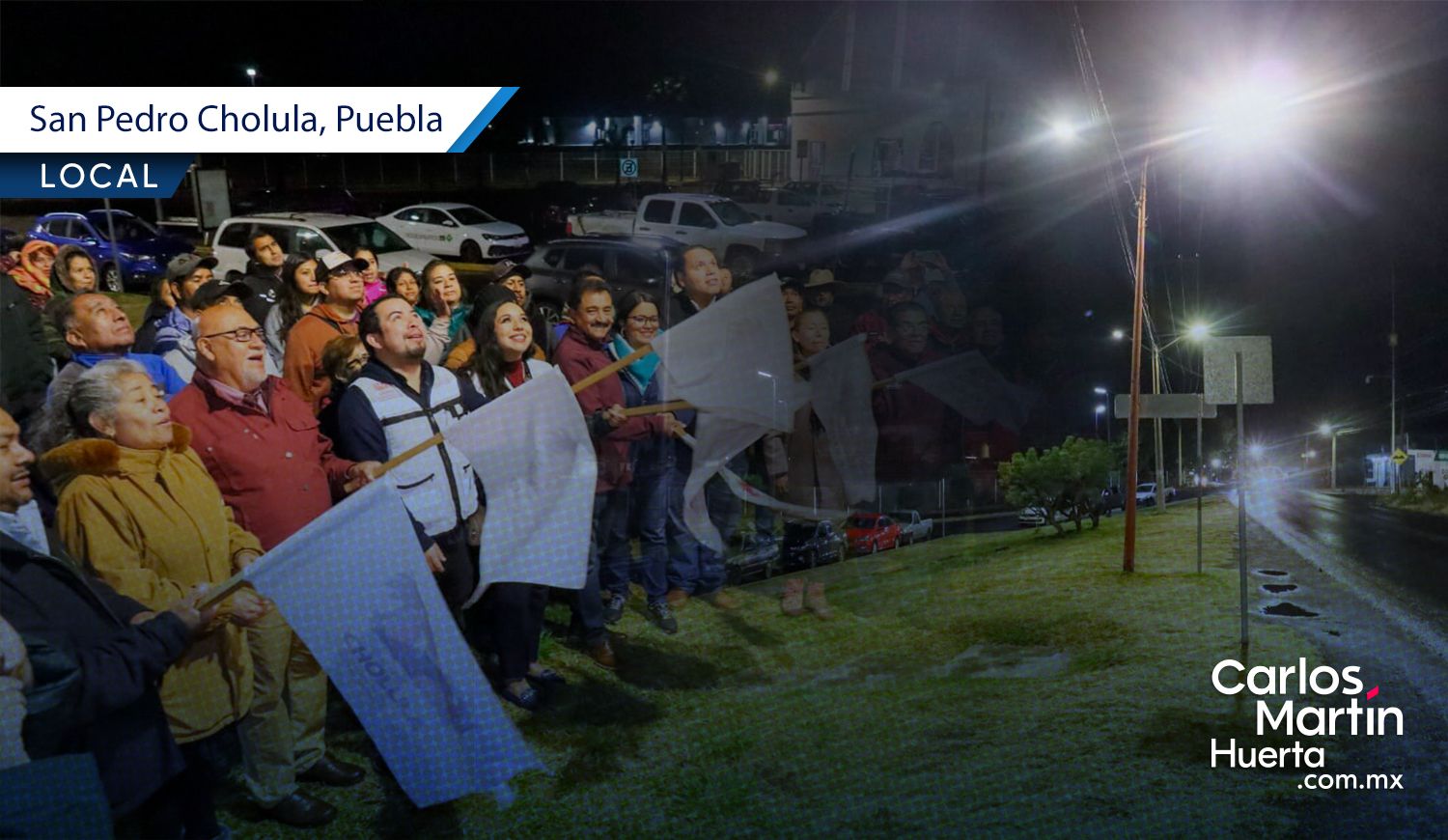Modernizan alumbrado público en el Paso de Cortés para fortalecer la seguridad vial en San Pedro Cholula