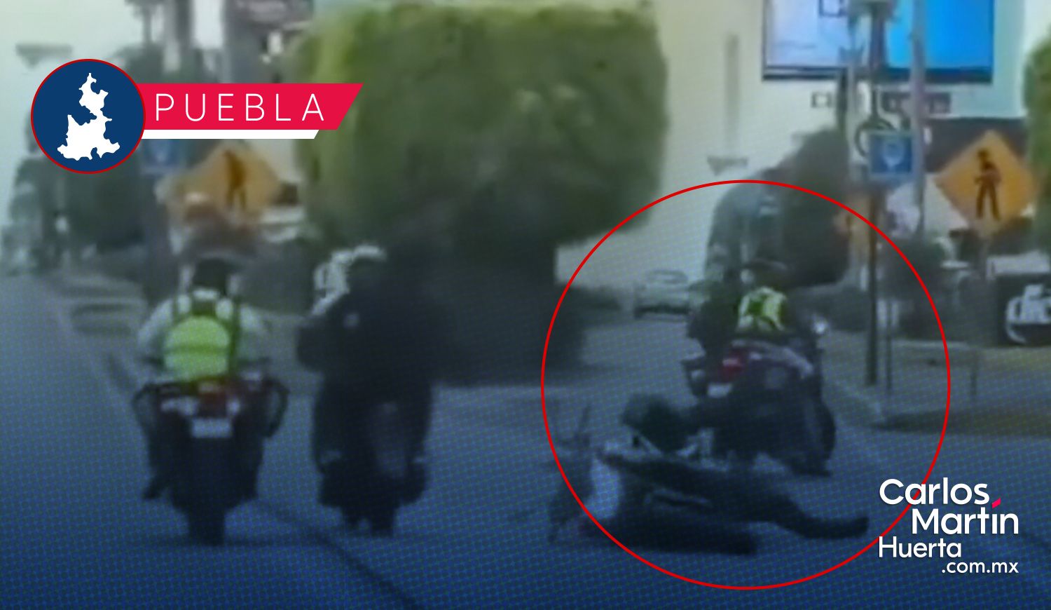 Al intentar detenerlo, el motociclista, quien iba acompañado de una persona atrás, le da un cerrón y lo choca, por lo que el oficial de tránsito pierde el control y cae en plena Vía Atlixcáyotl. Tras lo sucedido, los sujetos a bordo de la motocicleta emprenden la huida, mientras que otro agente de tránsito se detiene para ver el estado de su compañero.