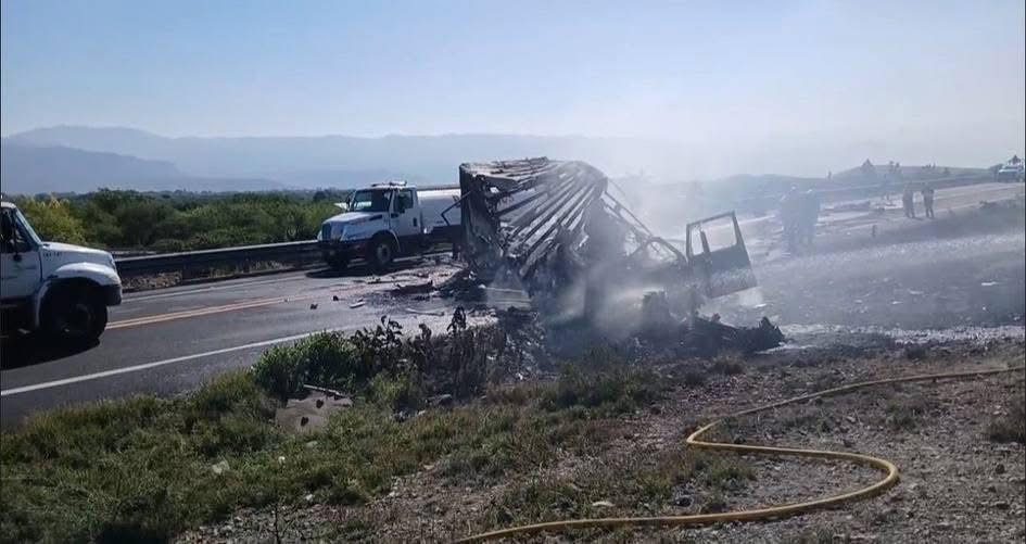 El conductor del tractocamión quedó prensado dentro de la cabina, sin posibilidad de escapar, por lo que fue alcanzado por las llamas hasta morir calcinado en el lugar.