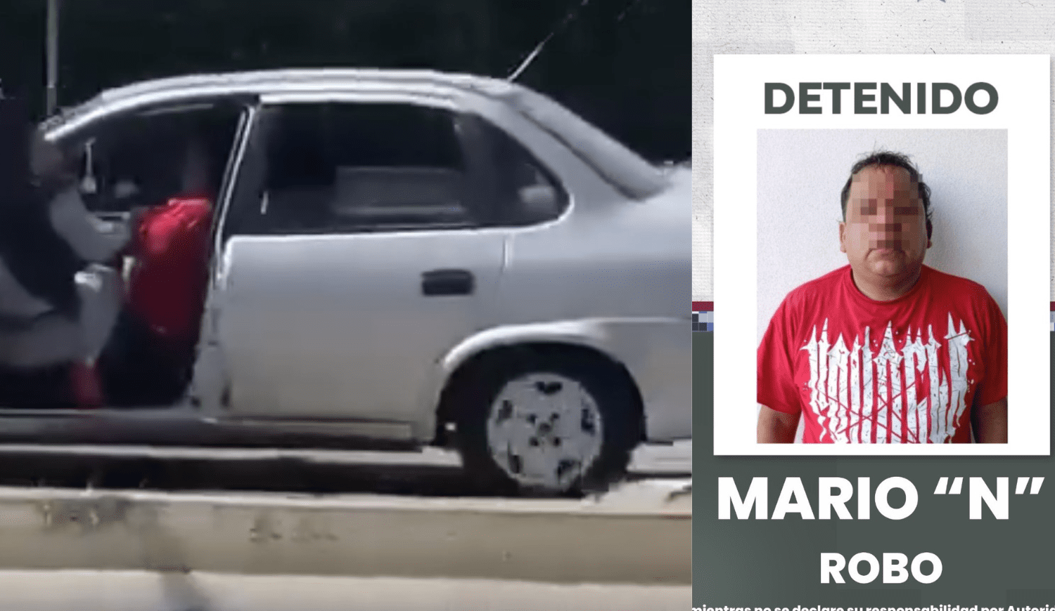 Una mujer persiguió a Mario N., de 50 años, quien le robó un iPhone 17 y 500 pesos, por lo que se colgó de la puerta del vehículo en el que pretendía escapar el delincuente