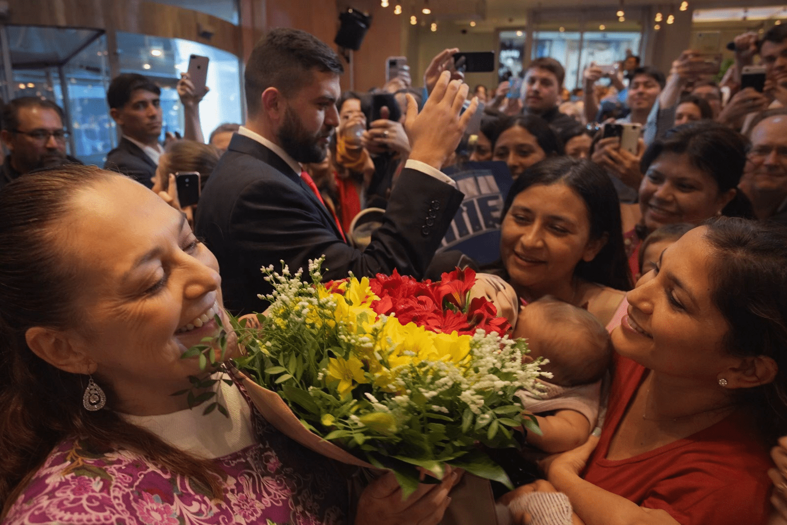 Música y porras: La comunidad mexicana se reúne en Barcelona para recibir a Sheinbaum