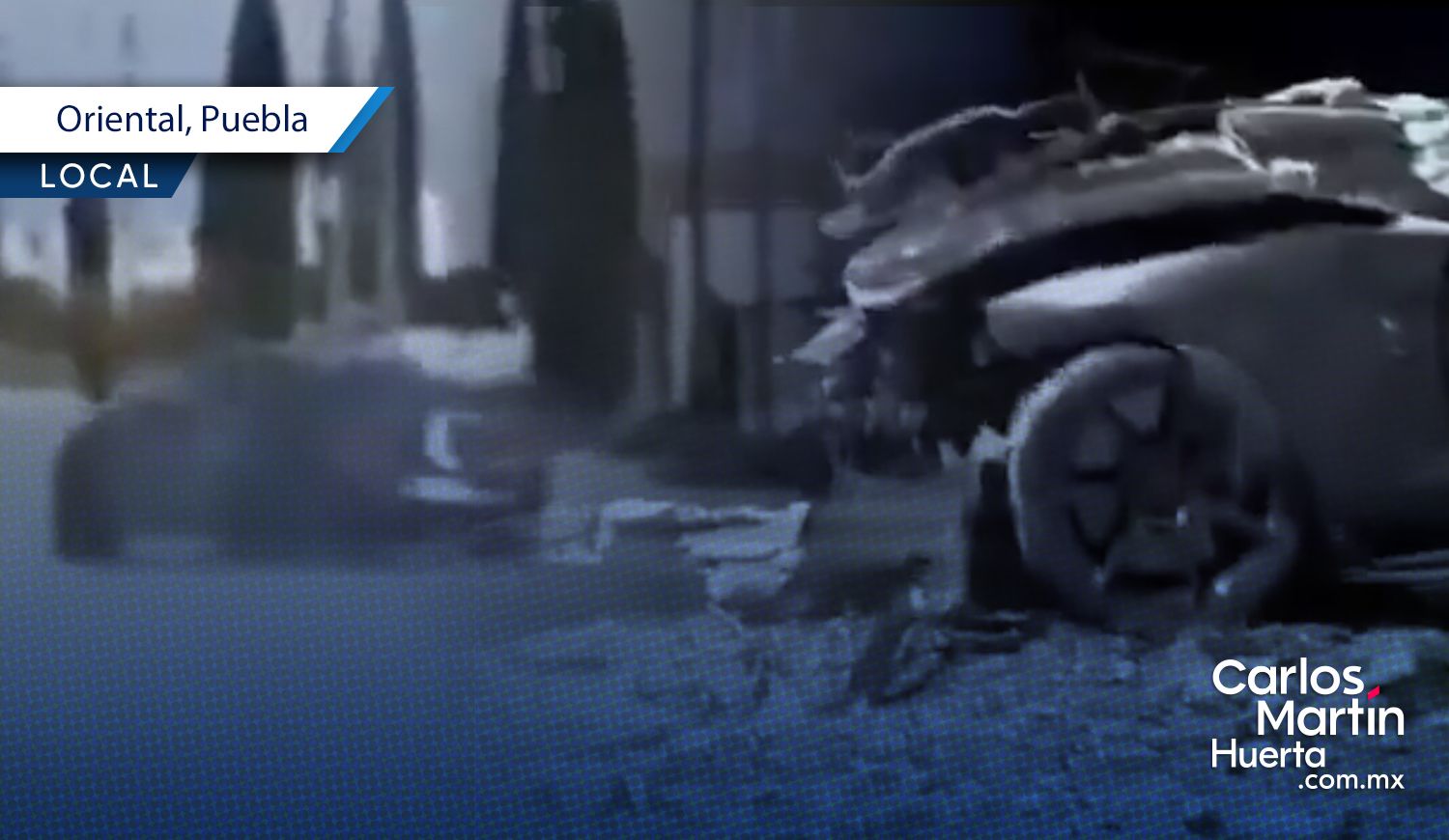 Se registró un fuerte accidente luego de que un Mustang que participaba en unos arrancones en el municipio de Oriental, perdiera el control de su unidad y se estrellara contra una vivienda. El vehículo quedó completamente destruido tras el impacto.