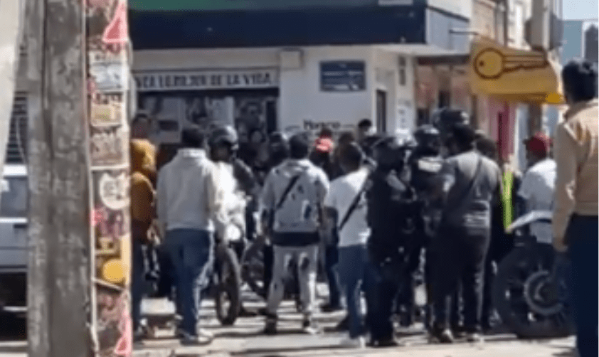 Esto provocó que un grupo de vendedores se reunirá portando palos, tubos y piedras encararon y agredieron a los uniformados.