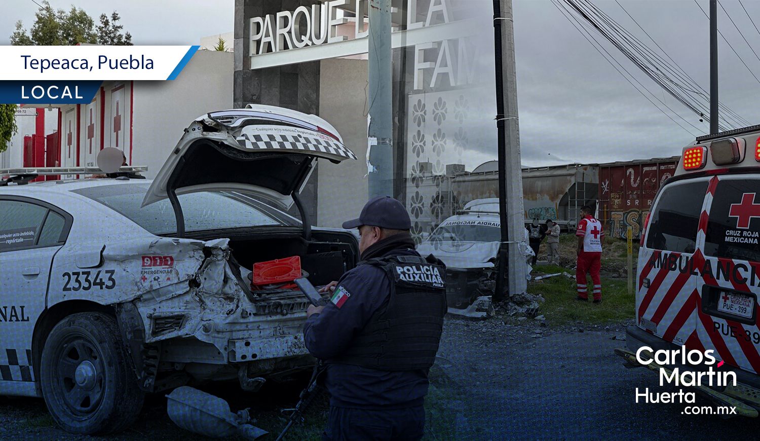 Patrulla de la Guardia Nacional intenta ganarle a un tren y provoca accidente en Tepeaca