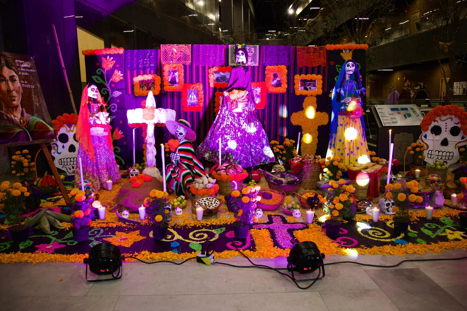 La exhibición consta de tres ofrendas. La primera dedicada a Sor Juana Inés de la Cruz, la cual fue presentada por la Asociación de Universidades e Instituciones de Educación Media Superior y Superior y el Instituto de Ciencias Jurídicas de Puebla. La segunda ofrenda en honor de los seres sintientes Frida y Proteo, elaborada por el Movimiento Animalista, y la tercera ofrenda dedicada a las mujeres indígenas, la cual fue realizada por el Centro Escolar Niños Héroes de Chapultepec (CENHCH).