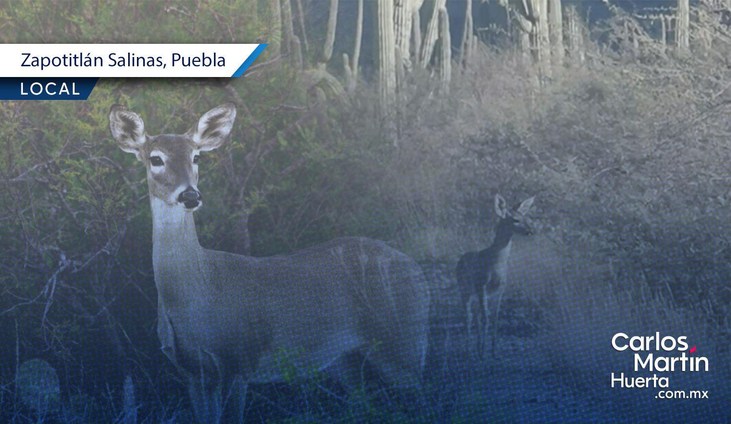 Una familia de venados cola blanca fue captada en las inmediaciones de Los Reyes Metzontla en el municipio de Zapotitlán Salinas. El avistamiento ocurrió cerca de la carretera que conduce a la junta auxiliar, donde los animales permanecieron visibles por algunos minutos antes de internarse en la vegetación característica de la zona.