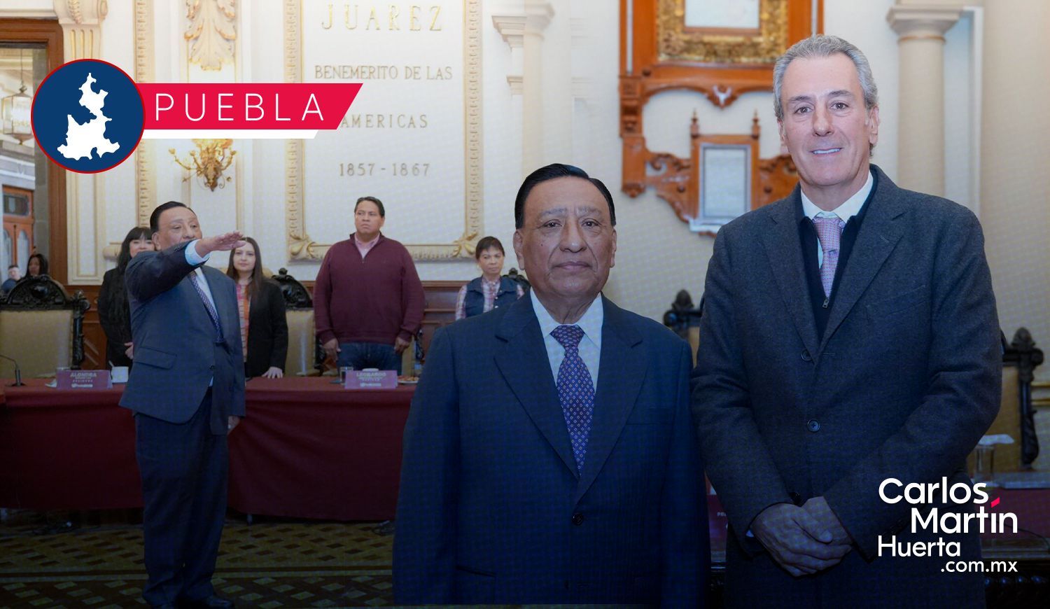 📹 En sesión extraordinaria de Cabildo, el presidente municipal de Puebla @pepechedrauimx toma protesta a Rufo Juárez Peñuela como secretario del Ayuntamiento pic.twitter.com/hbcmeTfqMZ
