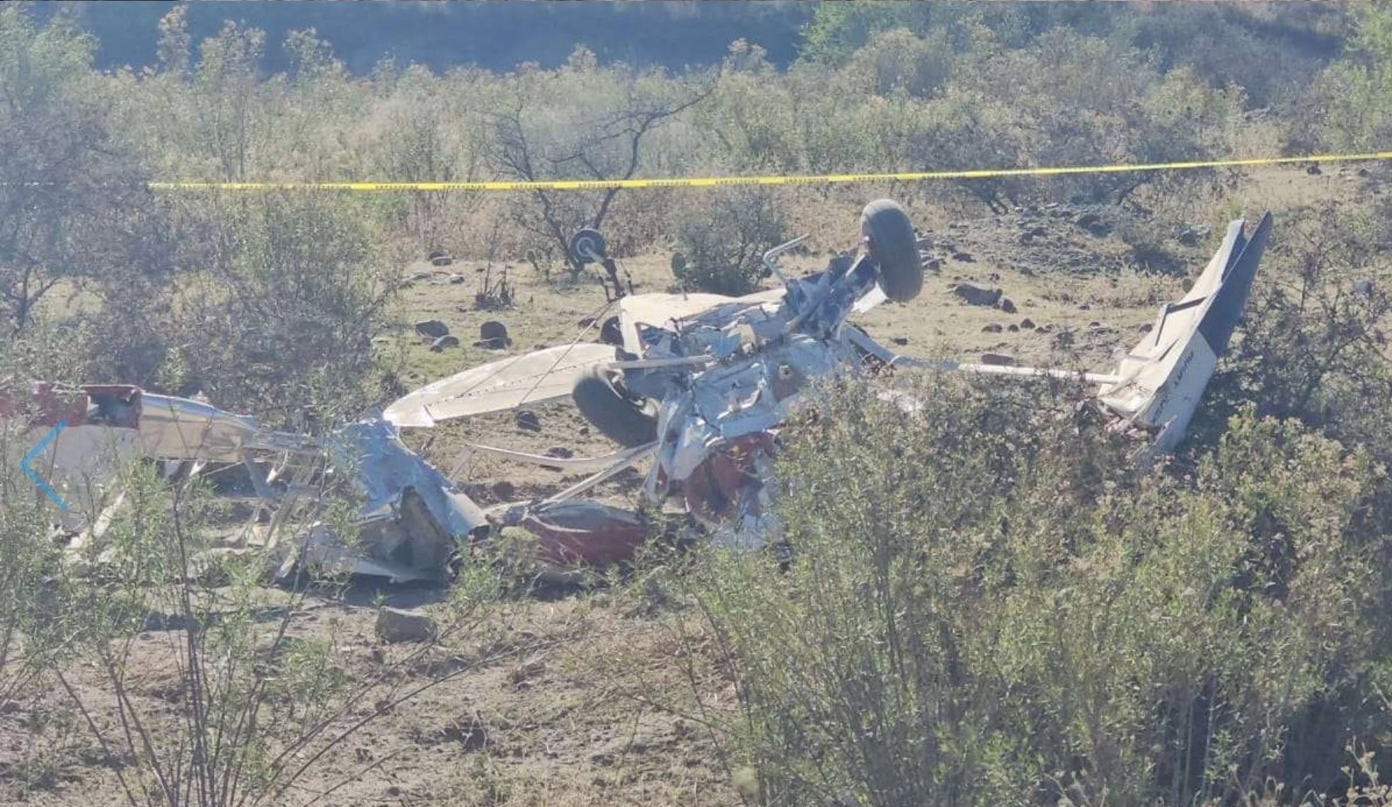 Las autoridades mantienen la zona resguardada mientras se llevan a cabo las diligencias para el levantamiento de los cuerpos y la remoción de los restos de la avioneta.