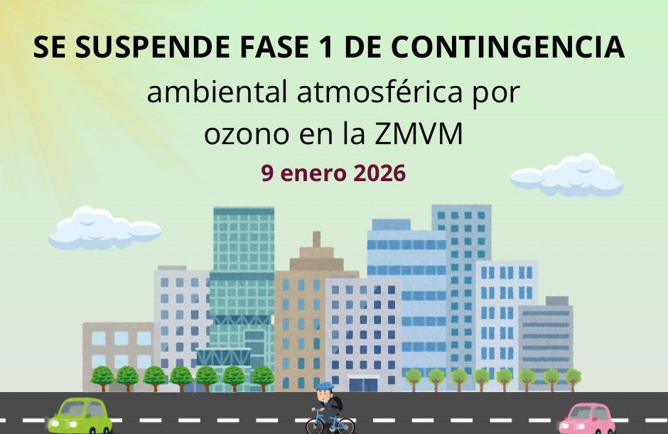 La Comisión Ambiental de la Megalópolis (CAMe) ha informado la suspensión de la Contingencia Ambiental Atmosférica por ozono en la Zona Metropolitana del Valle de México (ZMVM), así como de todas las medidas asociadas, a partir de las 18:00 horas de este viernes.