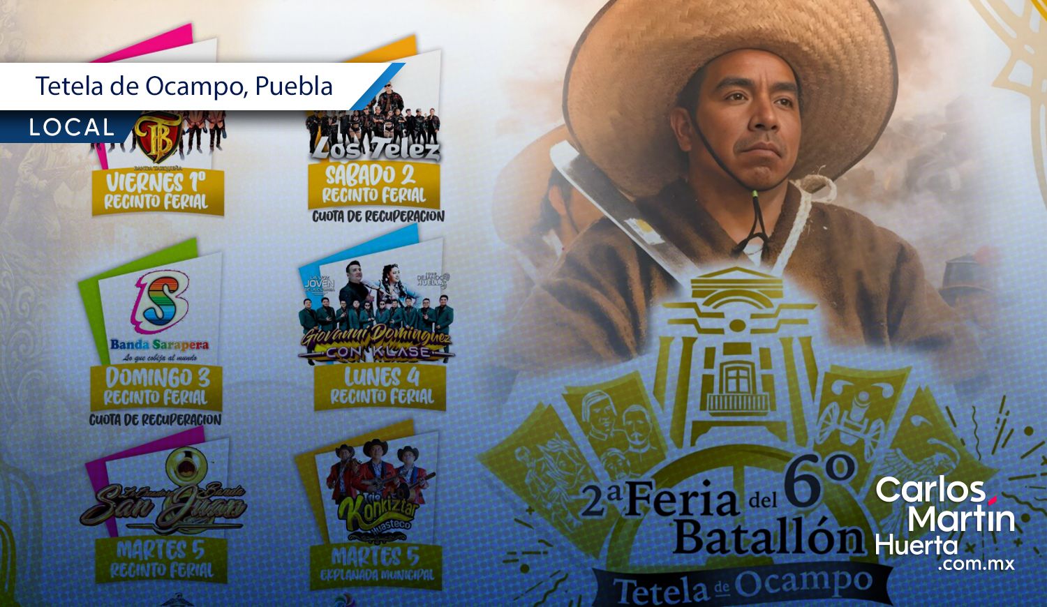 Tetela de Ocampo se prepara para la Segunda Feria del Sexto Batallón. El encuentro se llevará a cabo del 1 al 5 de mayo. La festividad busca rendir homenaje a los campesinos e indígenas que combatieron en la Batalla del 5 de mayo bajo el mando de Juan Nepomuceno Méndez.