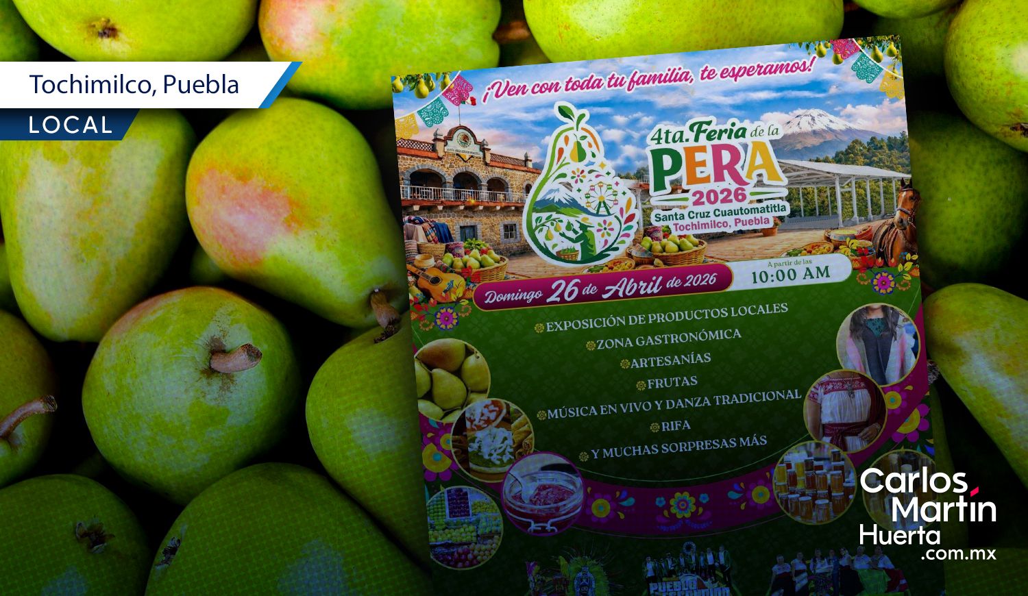 Tochimilco presenta la Feria Regional de la Pera y su Fiesta Patronal 2026