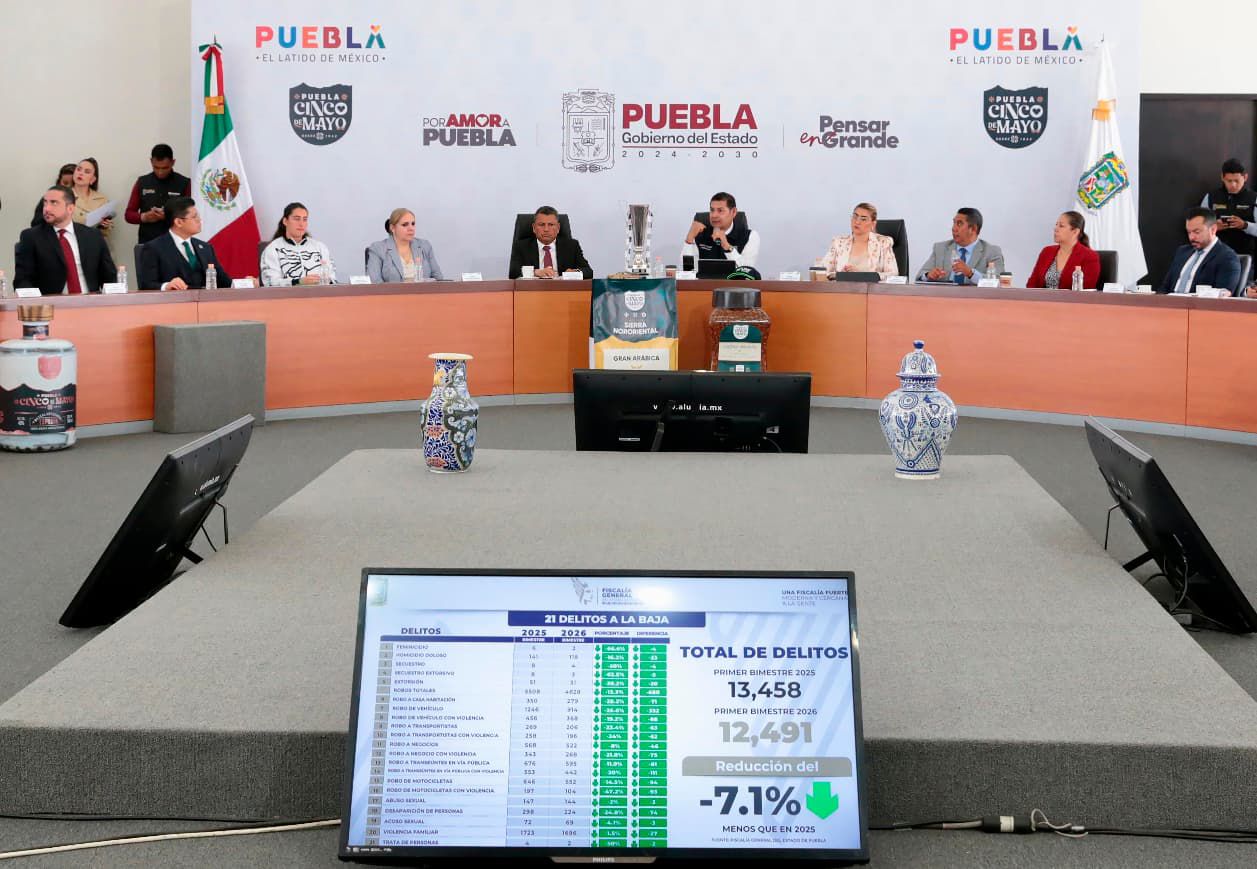 Durante el primer bimestre de 2026, la incidencia delictiva registró una disminución del siete por ciento en comparación con el mismo periodo de 2025, lo que se traduce en 21 delitos a la baja. “Tenemos la convicción plena, que nuestra responsabilidad coadyuvará con la seguridad, procurar la justicia y contribuir al desarrollo de la riqueza comunitaria”, afirmó el gobernador de Puebla Alejandro Armenta Mier.
