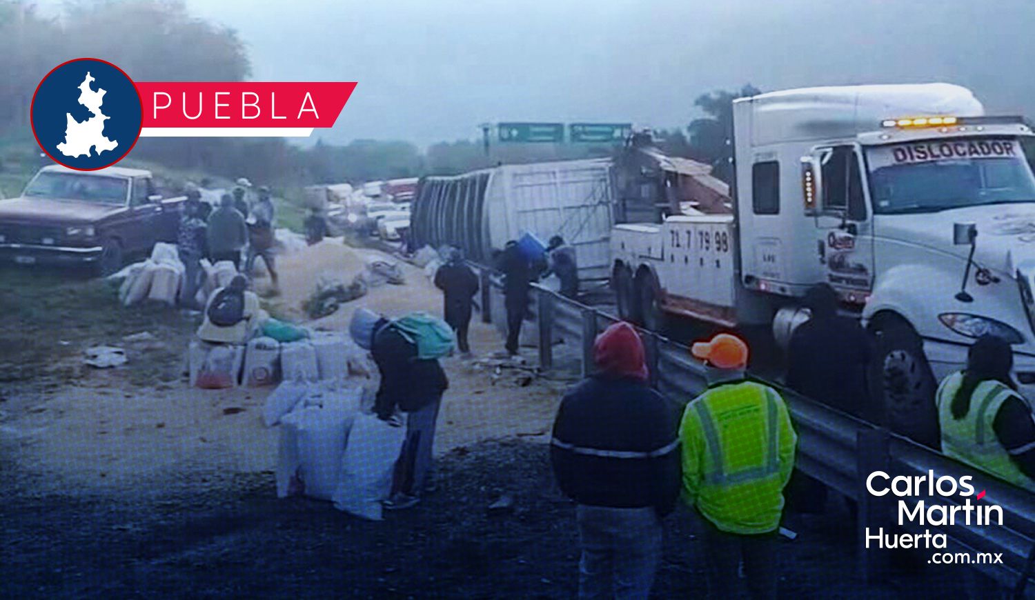 La mañana de este martes, se registró un fuerte accidente sobre la autopista Puebla-Orizaba, luego de que un tractocamión que transportaba una jaula granelera se volcara. Esto sucedió en el kilómetro 263, con dirección a Puebla y provocó la movilización de las autoridades al lugar.
